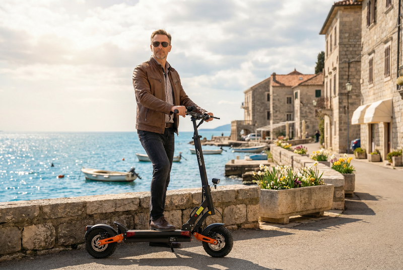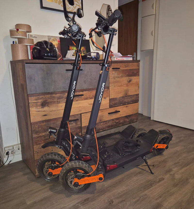 ★★★★★Joyor T10 is a good e-scooter for the affortable price. ZOOM hydraulic brakes are awesome and works very well. Scooter has lightweight design and strong power of 2 motors with 1000W each. 60volts makes it even stronger and smoother in ride experience. Simple LCD with USB-C port at the back of it is cool. Just put some tubeless wheels and you can bring it to the top level.