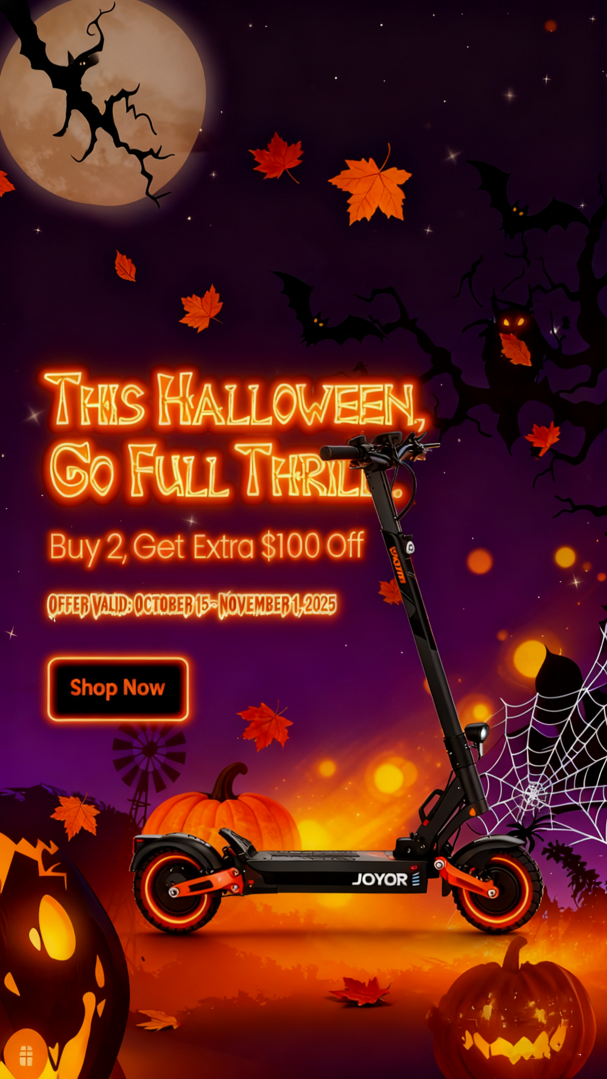 We purchased 2 of the Joyor scooters for our 2 week trip to Florida. Their folding option made them the perfect packing solution fitting into our Jeep leaving plenty of room for luggage.