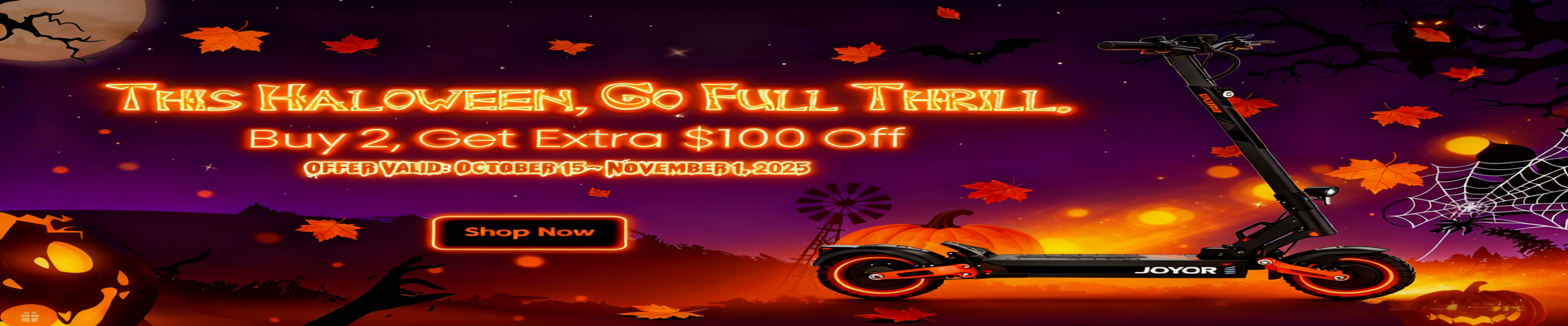 We purchased 2 of the Joyor scooters for our 2 week trip to Florida. Their folding option made them the perfect packing solution fitting into our Jeep leaving plenty of room for luggage.